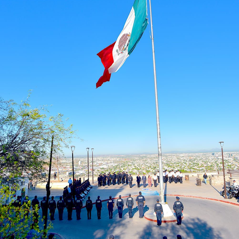Hermosillo, Sonora; 2 de septiembre, 2024.- El Presidente Municipal, Antonio Astiazarán Gutiérrez, encabezó la ceremonia de honores e izamiento de Bandera en el Cerro de la Campana con motivo del mes patrio, la organizó personal de la Jefatura de Policía Preventiva y Tránsito Municipal.