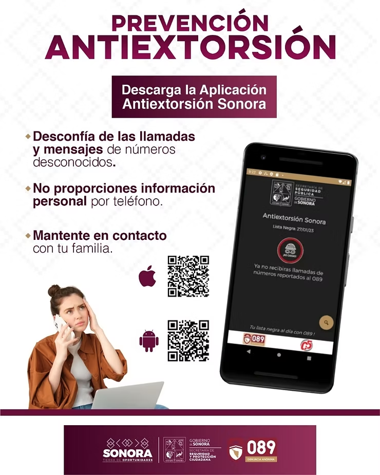 Hermosillo, Sonora; 4 de febrero de 2026.– Para prevenir que las y los sonorenses sean víctimas de extorsión telefónica, la Secretaría de Seguridad y Protección Ciudadana (SSPC) recomendó descargar la aplicación móvil Antiextorsión Sonora, una herramienta tecnológica de fácil uso y totalmente gratuita.